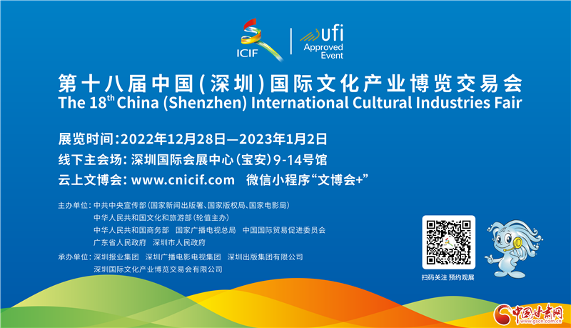 本屆文博會由中宣部、文旅部、商務部、國家廣播電視總局、中國國際貿易促進委員會、廣東省政府和深圳市政府聯合主辦,國家廣電總局輪值主辦,深圳報業集團、深圳廣播電影電視集團、深圳出版集團有限公司、深圳國際文化產業博覽交易會有限公司承辦。線下主會場將于12月28日至2023年1月2日在深圳國際會展中心9-14號館舉辦,12月29日起正式向公眾開放。云上文博會平臺設在文博會官網(www.cnicif.com)、微信小程序“文博會+”,與線下主會場展覽時間同步,全天24小時開放。此外,本屆文博會還設立了65家分會場,分別設立在深圳市各區(新區),目前各分會場已陸續啟動展覽展示與交易活動。