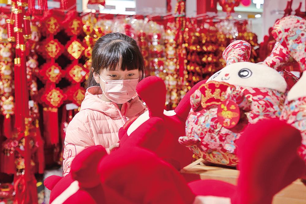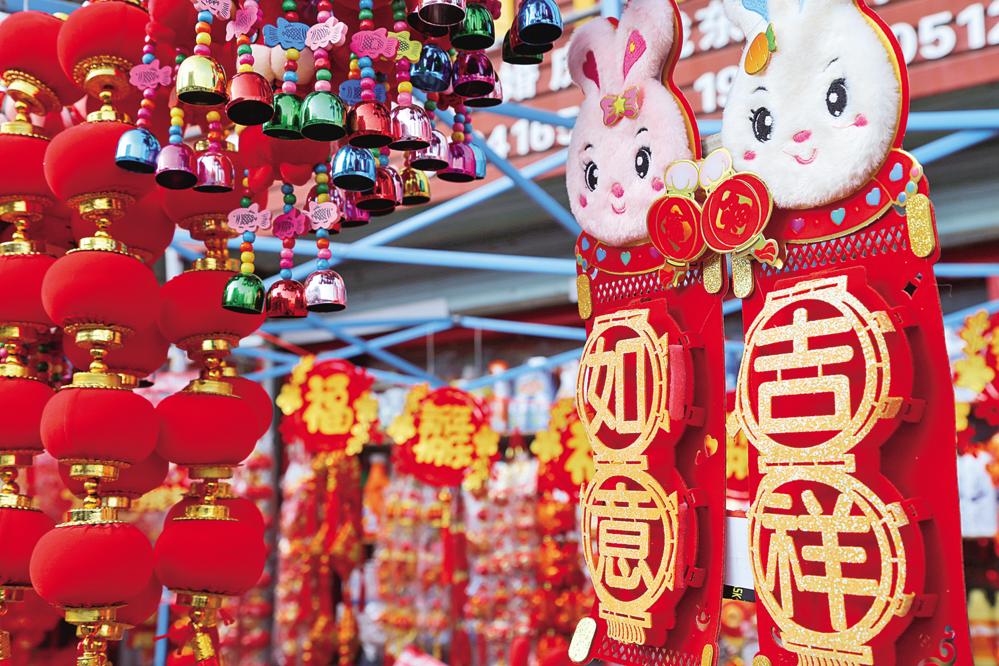 原標(biāo)題:“兔元素”走俏年貨市場 濃濃年味撲面來