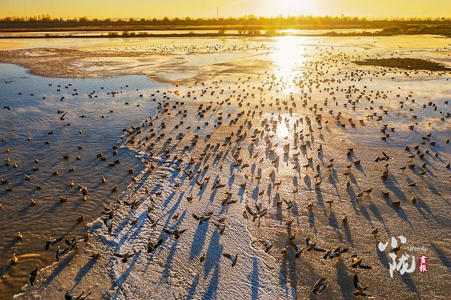 這里是甘肅民勤石羊河國家濕地公園,一處鑲嵌在騰格里和巴丹吉林兩大沙漠的“生態廊道”,位于民勤縣城以南30公里處,南起紅水河橋,北至紅崖山水庫北緣,是中國西北干旱區富有代表性的河流與沙漠水庫復合型濕地公園、荒漠濕地動植物的樂園和基因庫。