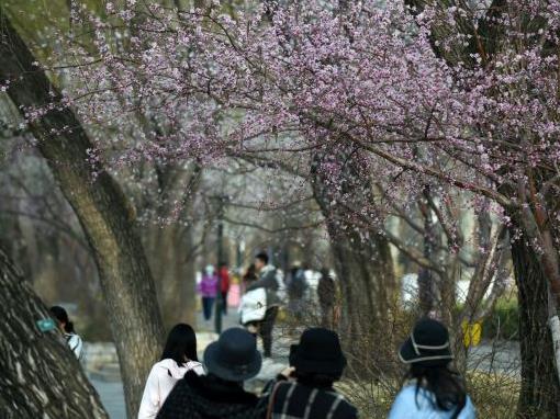 近期,隨著氣溫升高,北京玉淵潭公園里的山桃花爭相綻放,美不勝收。
