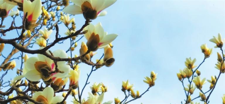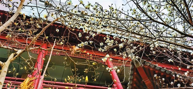 3月10日,記者途經秦州區自由路玉蘭一條街時欣喜地看到,由東往西走,穿過刻有“秦風在茲”的天水古城牌坊,滿巷漸次盛開的玉蘭花一樹樹玉樹臨風,一朵朵冰清玉潔。平房民居的屋頂上、脊獸斗拱邊,橫橫斜斜“躺臥”著若干膚白肌潤的花朵,借景為鄰靜觀細瞧,人與花似感心意相通,片刻間也能生出不少情趣來。