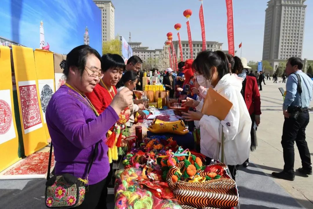 白銀市第五屆黃河風情文化旅游節啟動儀式上游客駐足觀賞展覽品。喬麗霞 攝