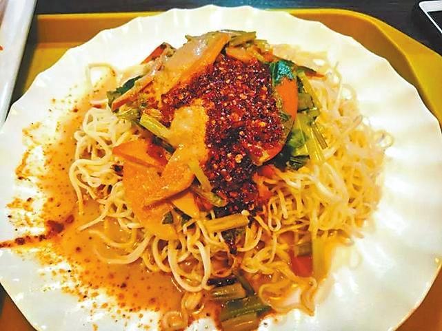 一碗標準的涼州涼面,必須是滿滿一碗,總要冒高點才夠分量。鹵汁分葷、素兩種。鹵子里有豬肉抑或牛肉片、土豆塊、豆腐、豆角、胡蘿卜、干白菜等,攪兩筷子,每一根面條都蘸上了鹵汁的感覺,看起來就非常有食欲。食客們埋頭呼嚕呼嚕開吃,相當過癮。雖然面是涼的,但鹵是熱的,完全不需要擔心會燙嘴,面條很筋道,味道很濃郁!傳說左宗棠多年征戰,戰事吃緊,為解決將士吃飯方便的問題,便想出冷面熱鹵的方法。吃涼州涼面,吃的是一種酸辣風味,更是一種對小城難以割舍的情愫。