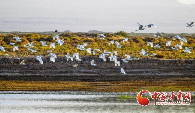 瓜州縣積極踐行“綠水青山就是金山銀山”發展理念,大力實施“生態立縣”戰略,持續加大保護區管護力度,不斷健全濕地管護體系,使縣內濕地面積逐年增加,生態系統得到有效保護,成為水鳥棲息繁衍的樂園。