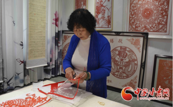 中國甘肅網5月18日訊 (本網記者 田洋 通訊員 丁海琴)5月17日,在瓜州縣文化館內一片“沙沙”的裁剪聲中,一張張紅紙,折折剪剪、從內往外、從簡到繁,普通的紅紙有了圖案,寫意與寓意步步呈現。