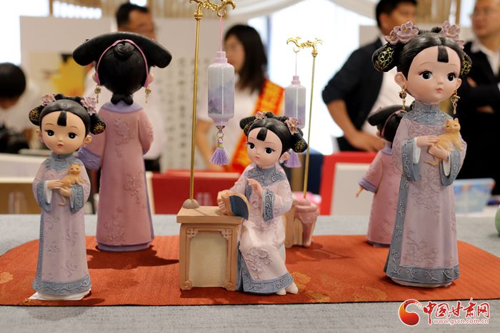開幕式后,記者在“寫榆中,畫榆中”書法美術作品展廳中看到,展品不僅有數量眾多的書法作品,還有諸如泥塑,木雕等結合榆中當地特色的文創產品,其中包括被列入省級非物質文化遺產名錄的青城水煙加工工藝,精致小巧,技藝高超。