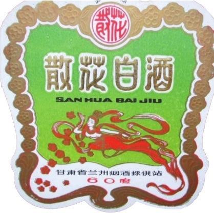 1963年,蘭州酒廠成立;1974年更名為蘭州釀酒廠,白酒年產量超過千噸。1977年,蘭州釀酒廠出品之金城曲酒,在全省酒評會上名列前茅。1984年,蘭州釀酒廠推出金城大曲、金城特曲,后又推出甘酒系列白酒,形成了蘭州地產酒的高中低檔系列,年產量達1500噸。但受國內白酒行業客觀環境影響,蘭州地產白酒未能走得更遠,蘭州白酒釀造業最終于1996年畫上了句號。值得一提的是,20世紀七八十年代,蘭州煙酒采供站還出品過一款“散花”牌60度白酒,商標名稱及圖案源自敦煌壁畫里的天女散花形象,這個度數的白酒如果放開“挖”的話,酒量差些的人估計滿腦子都是天女散花了。
