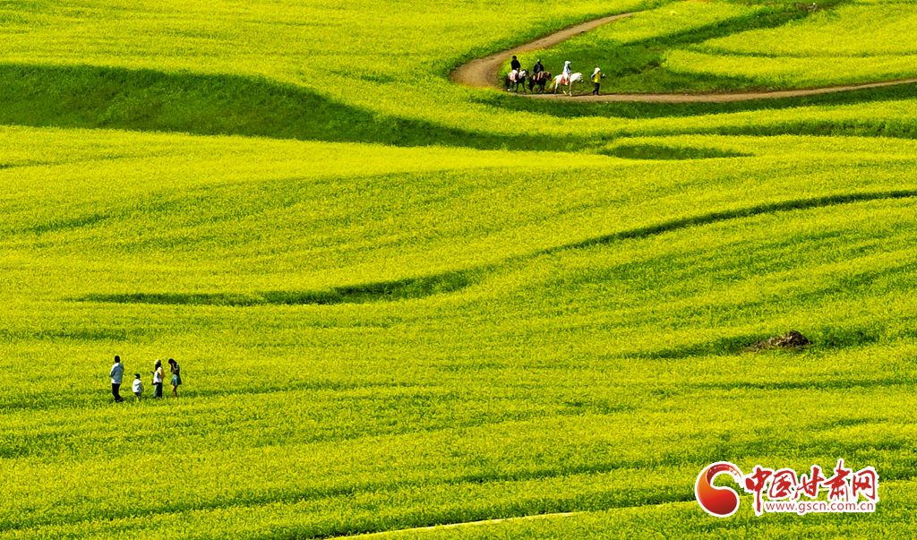 連日來,甘肅省張掖市民樂縣萬畝油菜進入盛花期,金黃的油菜花海與草原綠野相連,在藍天白云的映襯下美不勝收,成為河西走廊地區(qū)的一道別致風景,吸引了眾多國內外游客前來觀光旅游。