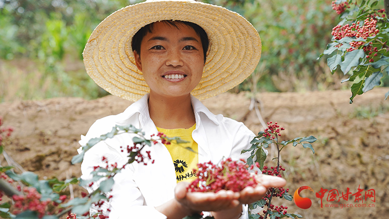 一排排花椒樹綿延在山丘、耕地之間,紅色的花椒綴滿枝頭。田間地頭里隨處可見椒農們全家齊上陣采摘花椒的場景。椒農們手上采摘的是生活,眼里映出的是火熱的希望。