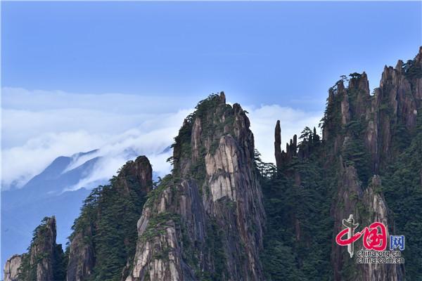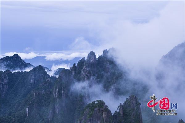 7月22日下午,安徽黃山風景區暴雨洗禮之后,漫山清秀俊逸,山石似黛,蒼松翠綠,云霧飄渺間,時而煙云繚繞如輕紗飛舞,時而又在千峰萬壑中波濤涌動,與奇松、怪石相映成趣,美如仙境。