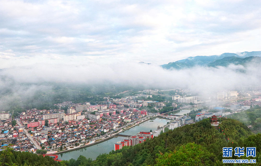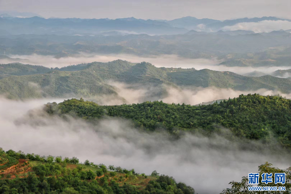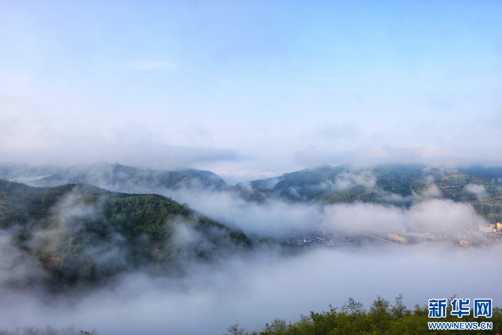 近日,甘肅省隴南市兩當(dāng)縣上空云霧繚繞、煙波浩渺,縣城、山峰在霧海中若隱若現(xiàn),陽光從云霧間掠過,勾勒出一幅幅如夢(mèng)如幻的美麗畫卷。新華網(wǎng)發(fā)(楊曉 攝)