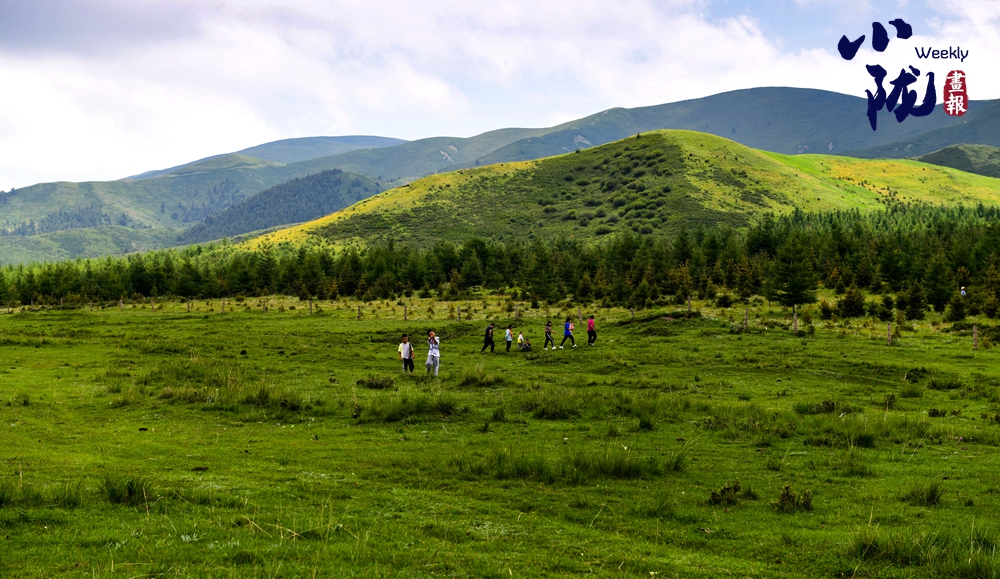 草原在山脈起伏中展開,南來北往的游客踏草慢行,感受獨特的草原夏日風情。