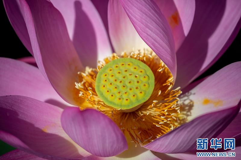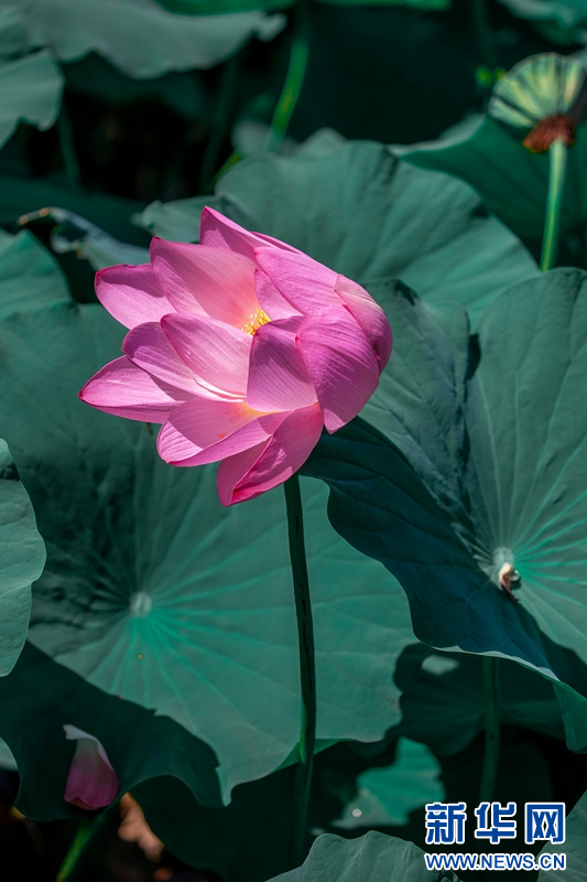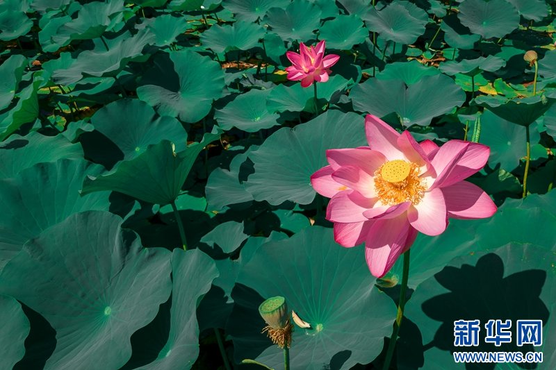 近日,在甘肅省白銀市白銀區水川黃河濕地公園,滿池荷花嬌艷、荷葉青翠,藍天、碧水、嬌花、翠葉構成了一幅秋日美景圖。新華網發(郭宏 攝)