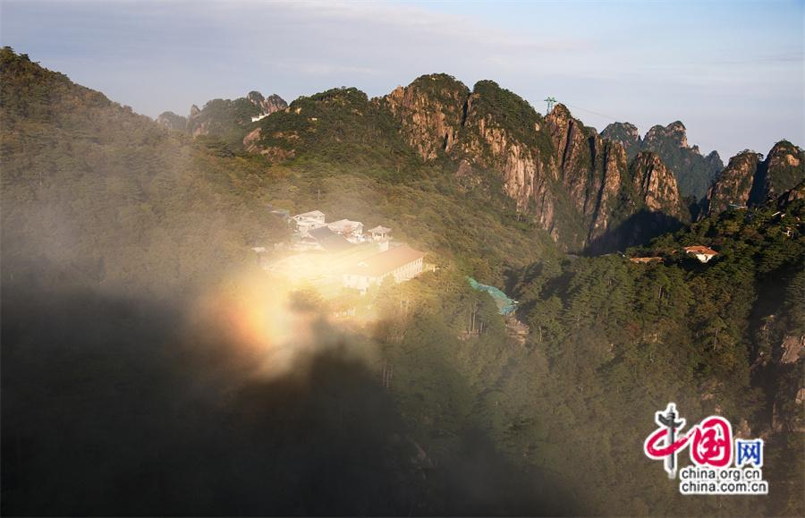 9月7日,安徽黃山風景名勝區云霧飄渺仙氣飄飄,如同仙境,云霧在初升的陽光照射下,神奇的“佛光”景象出現在人們眼前,讓來黃山的游客大飽眼福,贊嘆大自然的鬼斧神功。