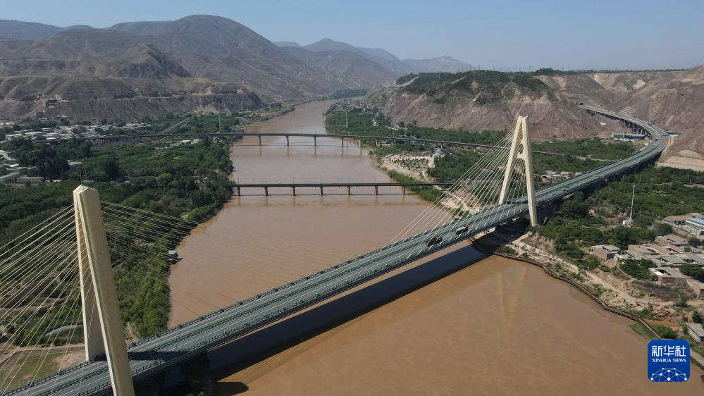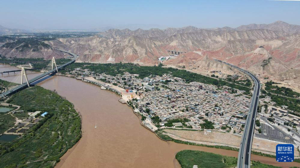 緊鄰甘肅省蘭州市西固區(qū)河口古鎮(zhèn)的高速公路大橋橫跨黃河(7月9日攝,無人機(jī)照片)。新華社記者 張可任 攝