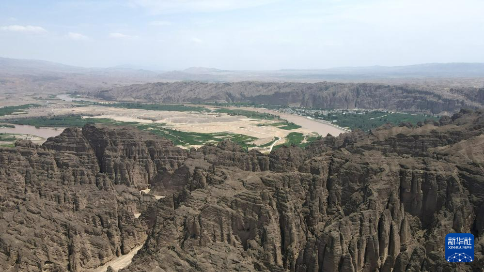 這是位于甘肅省白銀市景泰縣中泉鎮(zhèn)龍灣村的黃河石林景觀。黃河石林千峰競奇、峽谷蜿蜒,與黃河遙相呼應(yīng),形成山環(huán)水轉(zhuǎn)、動靜結(jié)合的自然奇觀(7月11日攝,無人機(jī)照片)。新華社記者 方欣 攝