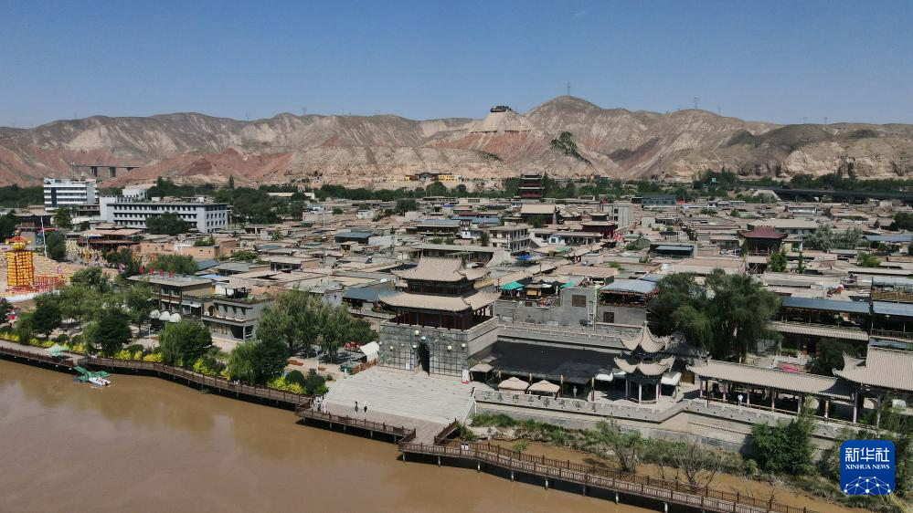 這是位于甘肅省蘭州市西固區(qū)黃河北岸的河口古鎮(zhèn)。河口古鎮(zhèn)歷史悠久、文化底蘊(yùn)深厚,現(xiàn)留存商賈碼頭、戰(zhàn)略要塞、交通樞紐等遺跡(7月9日攝,無人機(jī)照片)。新華社記者 陳斌 攝