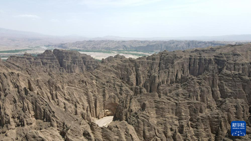 這是位于甘肅省白銀市景泰縣中泉鎮(zhèn)龍灣村的黃河石林景觀。黃河石林千峰競奇、峽谷蜿蜒,與黃河遙相呼應(yīng),形成山環(huán)水轉(zhuǎn)、動靜結(jié)合的自然奇觀(7月11日攝,無人機(jī)照片)。新華社記者 張可任 攝