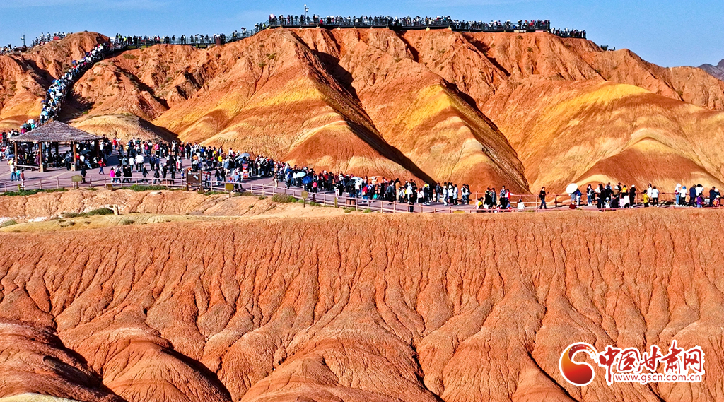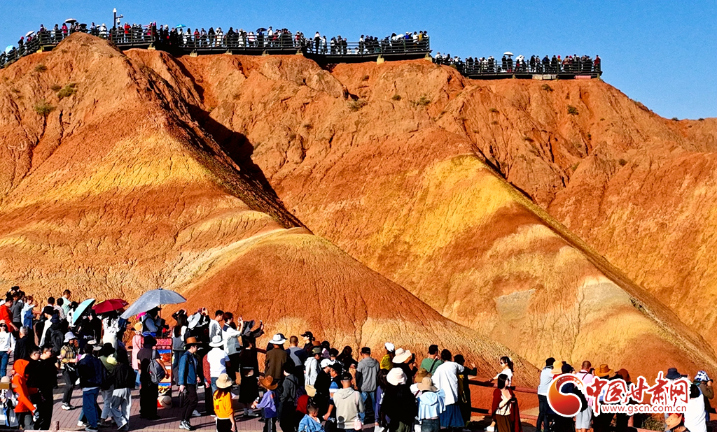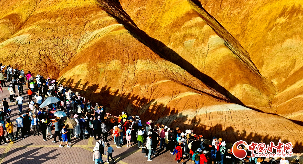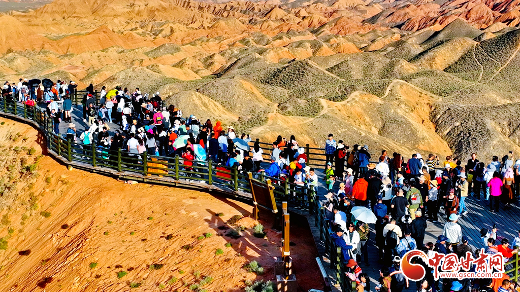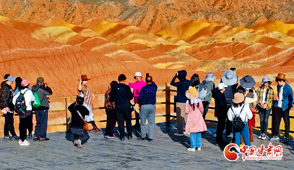 張掖七彩丹霞地貌群以其層理交錯、巖壁陡峭、氣勢磅礴、造型奇特、色彩斑斕而稱奇。2020年,國家文化和旅游部確定張掖七彩丹霞景區為國家5A級旅游景區;同年,張掖地質公園獲批“聯合國教科文組織世界地質公園”。據七彩丹霞景區管委會統計,當日是中秋國慶假期第二天,該景區游客量達29000多人。