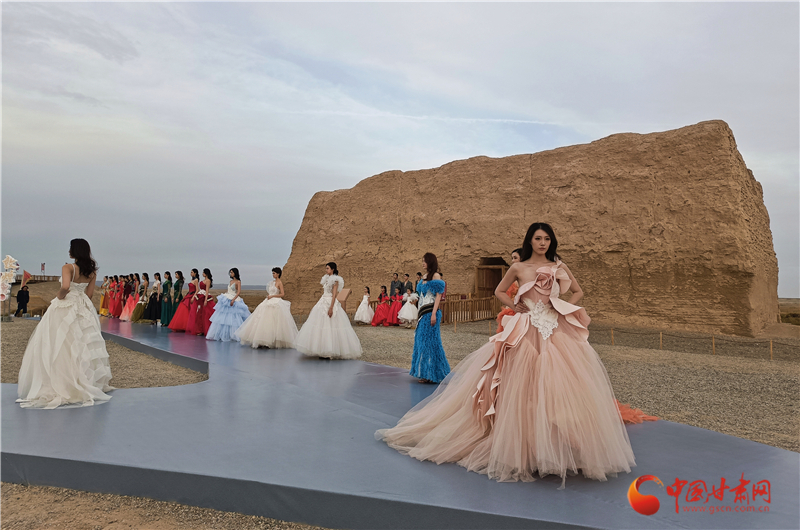 走秀的模特也表示,在玉門關下走秀很特別,行走時有清風在面頰拂過,特別有感覺,大地舞臺厚重寬廣更有時尚感。