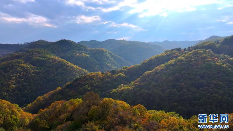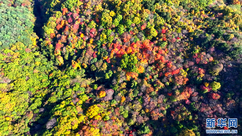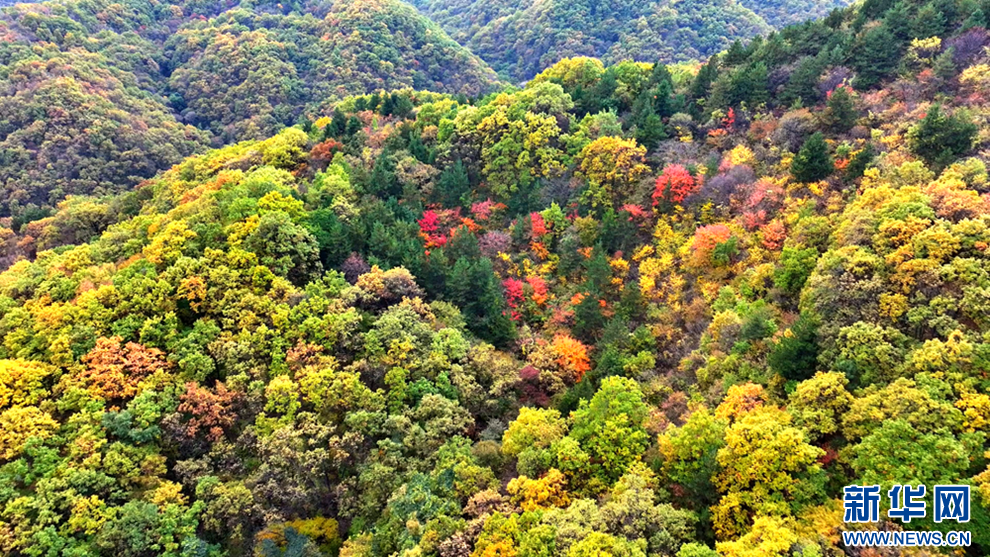 深秋時節,甘肅省平涼市崇信縣的唐帽山層林盡染,群山疊彩,勾勒出一幅絢麗多姿的美景圖。(圖片:高亮 文字:關改琴)