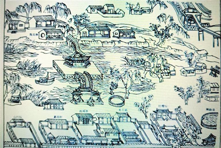 清乾隆年間的蘭州小西湖(蓮花池)示意圖。