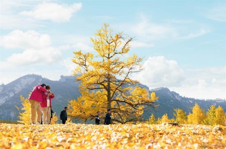 金秋時節(jié),走進徽縣嘉陵鎮(zhèn)田河村,恍若走進了金色的仙境。153棵古銀杏樹滿身金黃,一地落葉似“金色地毯”。銀杏樹下,品銀杏茶、吃銀杏果、享銀杏風情,美不勝收,吸引眾多游客前來拍照打卡。如今,美麗風景變身“美麗經濟”,當?shù)匾劳星赉y杏資源優(yōu)勢,引進“銀杏夢谷”旅游項目,打造集旅游觀光、生態(tài)康養(yǎng)、休閑娛樂、農特產品銷售為一體的美麗鄉(xiāng)村旅游示范點,讓千年古樹煥發(fā)新的生機。本報記者 冉創(chuàng)昌 高瓊 攝