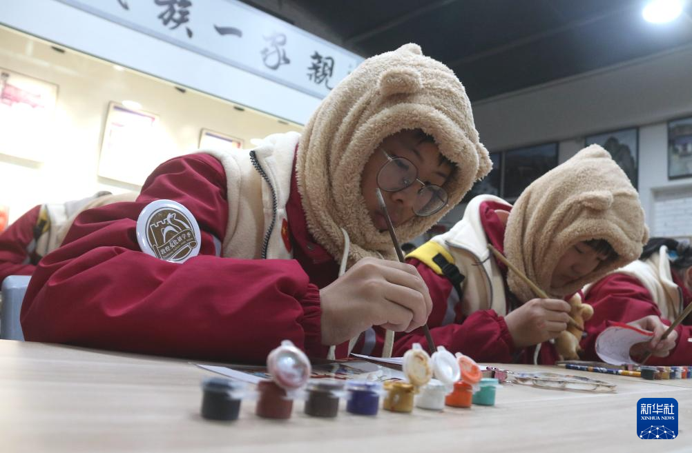 1月17日,在甘肅敦煌莫高里工匠村研學課堂,研學團隊學員學習臨摹敦煌壁畫。新華社發(張曉亮 攝)