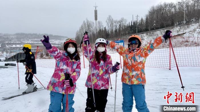 圖為臺胞青年在雪場拍照留念。王牧雨 攝