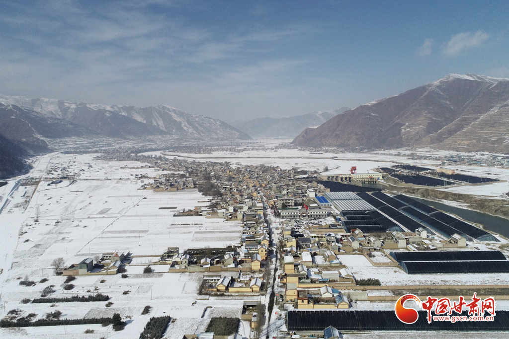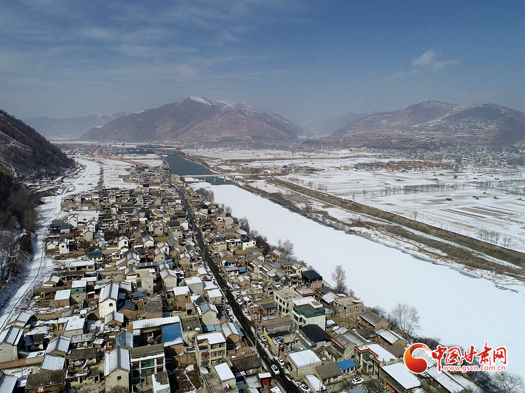 受冷空氣影響,岷縣近日迎來降雪天氣,十里鎮境內銀裝素裹,村莊與洮水、山脈構成了一幅美麗的冬景畫卷。
