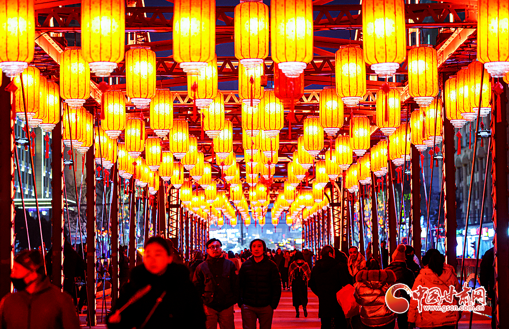 春節假期,紅紅的燈籠整齊懸掛在蘭州中山鐵橋上,為寒冷的冬日增添了一抹鮮艷的紅色,吸引眾多市民游客拍照打卡。通訊員 侯崇慧 攝
