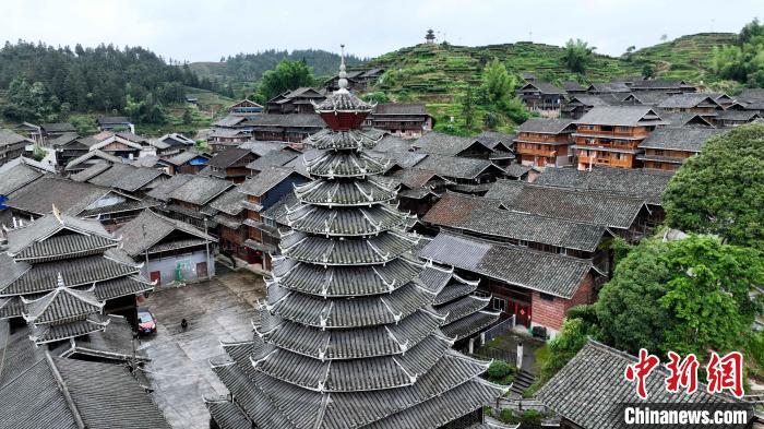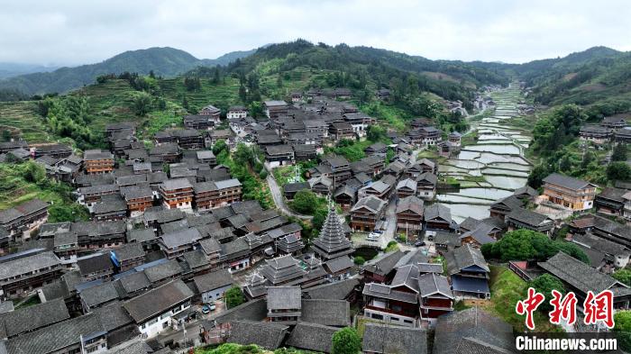 圖為航拍廣西三江侗族自治縣林溪鎮高友村風光。龔普康 攝
