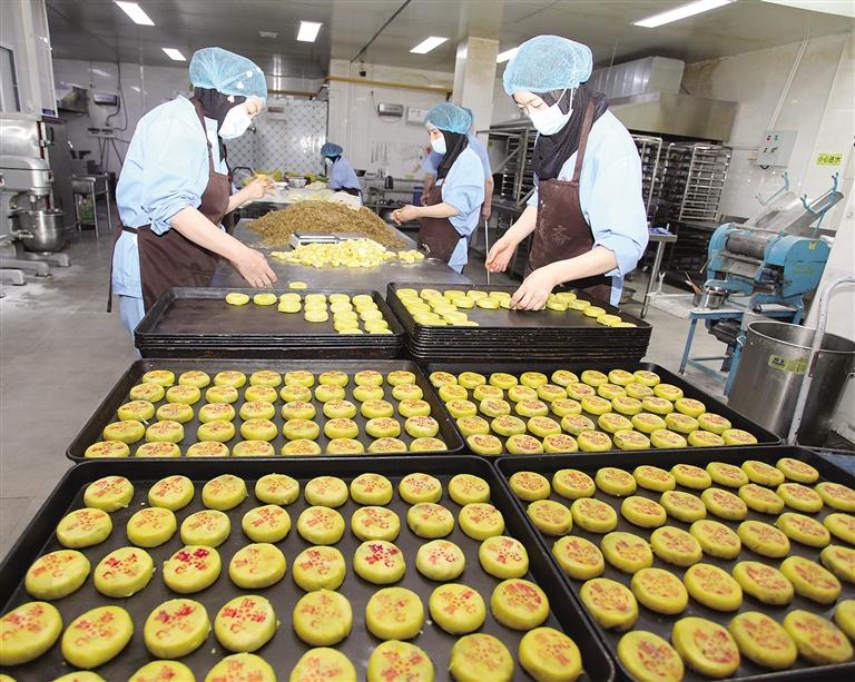 喝牡丹花茶,不能忽略牡丹花餅。蘊有淡雅花香、濃郁情懷的鮮花餅,經過腌制花醬、皮面包酥、壓模成型、烤制等工藝精心制成,層層酥皮裹著綿香的牡丹花醬,吃來清甜不膩。
