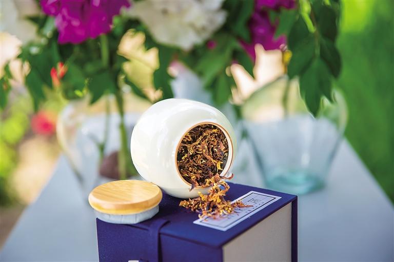 沖泡一杯牡丹花茶,一段香氣四溢的人生在茶杯里氤氳美好,花瓣與開水的碰撞是牡丹的另一種人生。牡丹花茶要玻璃杯沖泡才有意境,一朵牡丹花盛開在杯中,上下翻轉,靜候片刻,茶湯呈玫瑰色,確切地說是牡丹花色,晶瑩剔透,好看又耐看,詩意無比。若錯過了花開時節,那泡一杯牡丹花茶,欣賞不一樣的花開富貴,而后啜上一口,茶水在唇齒間流過,舌尖留點苦澀后兩側又有點甘甜,后入胃,帶著一絲的回暖,也是愜意。或將牡丹花瓣沖泡為清香的茶,或淋灑于菜品上作點綴,驚艷了味蕾與視覺,賞心悅目;或端起印有富貴牡丹花的蓋碗,品一品以牡丹為原料的茶飲,美在眼前流轉,花香在舌尖纏綿、流進心底。享用牡丹的甜美芬芳,便是初夏最長情的告白之一。