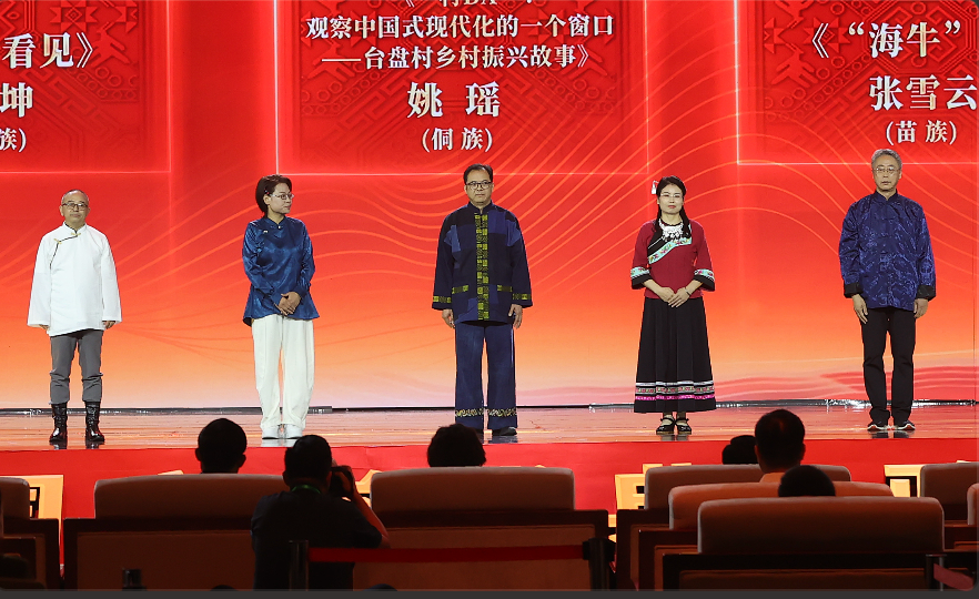 吉米平階、牛海坤、姚瑤、張雪云、周建新領取第十三屆全國少數民族文學創作駿馬獎報告文學獎。