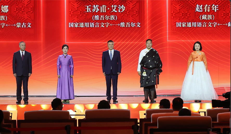 艾布、朵日娜、玉蘇甫·艾沙、趙有年、鄭風淑領取第十三屆全國少數民族文學創作駿馬獎翻譯獎。
