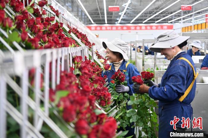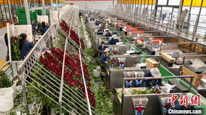 甘肅臨夏回族自治州臨夏市23日寒風(fēng)正勁。步入該市枹罕鎮(zhèn)青寺村的百益億農(nóng)國(guó)際鮮花港內(nèi),暖意正濃。引自荷蘭的多個(gè)品種玫瑰花競(jìng)相開(kāi)放,它們即將被打包發(fā)往北京、上海、廣州,以及東南亞等地。