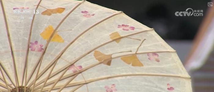 在最佳觀賞期來到村子里,游客朋友們還能看到和銀杏相關的非物質文化遺產。這是已經傳承了300多年的騰沖傳統非遺——油紙傘。這把傘在制作階段,就將銀杏葉放入了宣紙之間。打起油紙傘,就仿佛銀杏葉落在了傘上,充滿意趣。