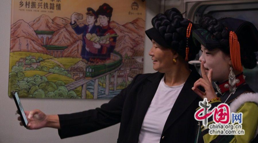 2024年11月20日,成昆線5633次慢火車上彝族乘客合影留念。原波 攝