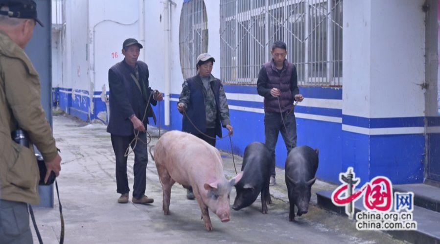 2024年11月20日,彝族老鄉在站臺上接豬。原波 攝