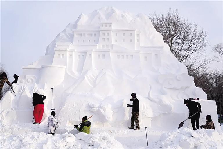 從滑雪場激情馳騁之后,便前往棲云田園小鎮。這里有著豐富多彩的冰雪活動,雪雕區里形態各異、栩栩如生的雪雕作品令人嘆為觀止。