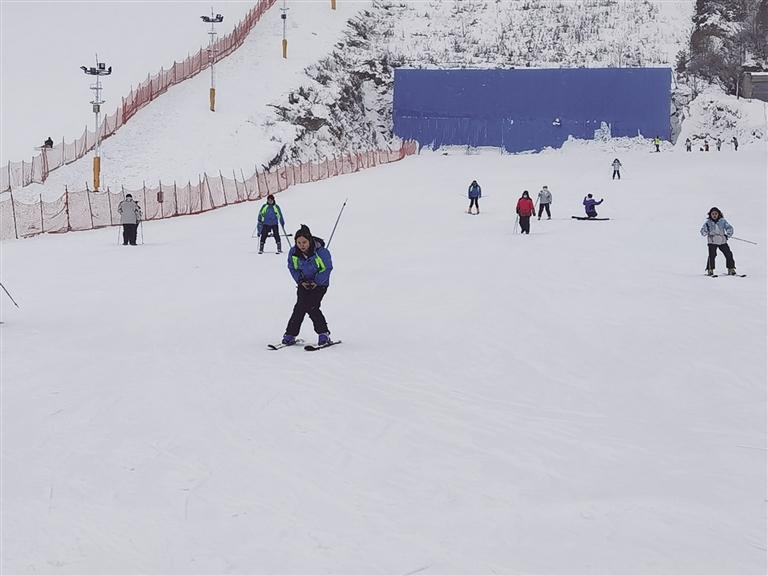 接著來到興隆山滑雪場,這里是冰雪運動愛好者的歡樂天地。滑雪場經理賈青云介紹,該滑雪場占地超400畝,擁有5條初、中級滑雪道,是中初級滑雪愛好者的樂園,今年全新打造的兩萬平方米豪華“戲雪樂園”更是引人注目。“開業不到一個月,已接待游客一萬多人,周末日均客流量超一千,平日也有四、五百人,滑雪場可同時容納2000人滑雪。”賈青云表示,滑雪場近期推出了優惠活動,原價128元的門票現只需88元,包含滑雪服和存衣柜的使用。值得一提的是,經過改造升級后的滑雪場加入了波西米亞風格,設有拍照打卡地和咖啡廳,成為年輕消費者熱衷的網紅打卡點,游客在此不僅能滑雪,還能享受火鍋、烤肉等美食,體驗別樣的冬日休閑時光。