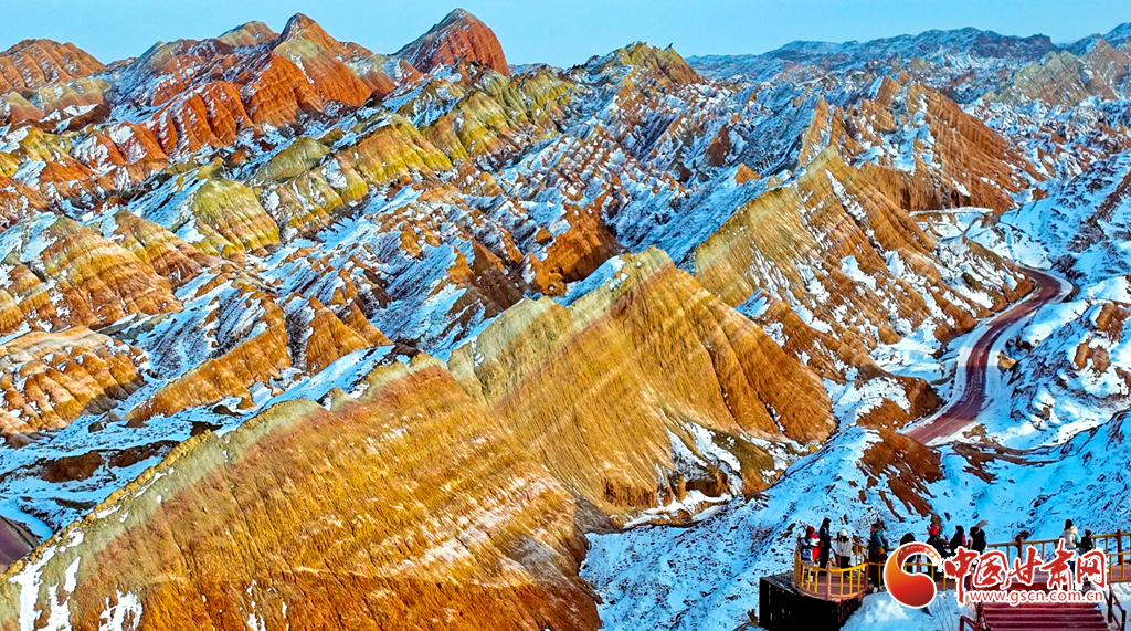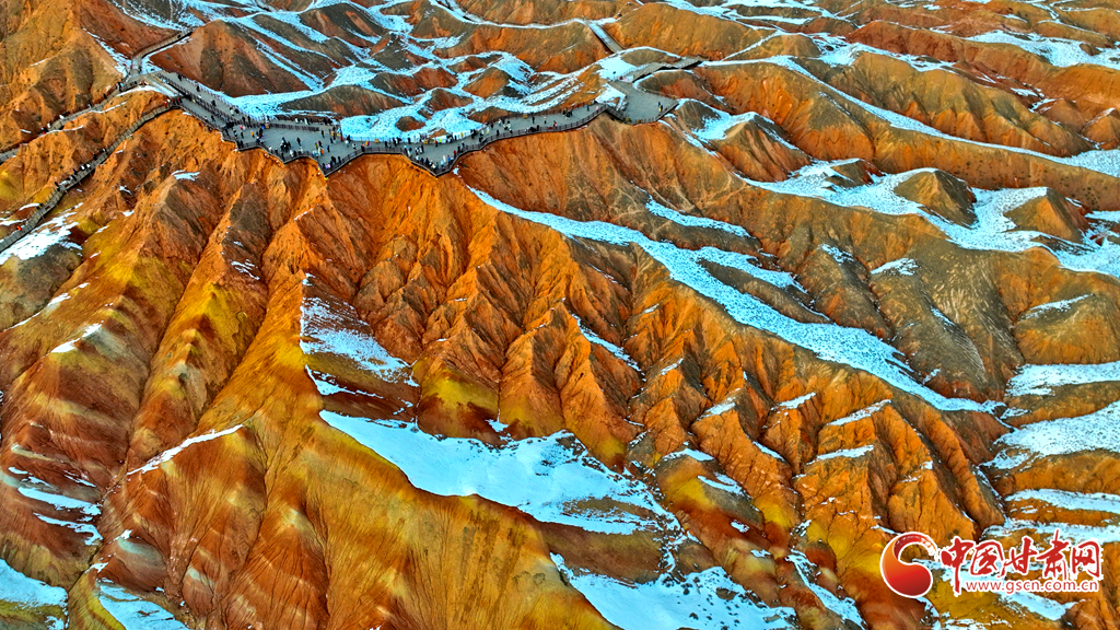 春節(jié)假期,張掖市七彩丹霞景區(qū)內(nèi)人頭攢動,全國各地游客慕名而來,欣賞宛如夢幻仙境般的雪浴丹霞地貌景觀,在領(lǐng)略大西北壯美景色中歡歡喜喜過大年。