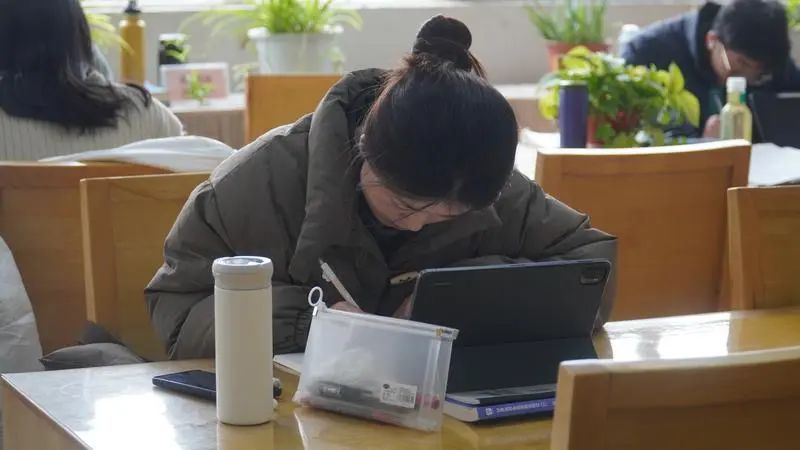 春節期間,每天早上八點半,圖書館就已經全部開放了。不到一個小時,各閱覽區近100個座位幾乎坐滿。由于想找個能安心讀書的環境,許多人在假期每天到訪圖書館,學習熱情絲毫不減。