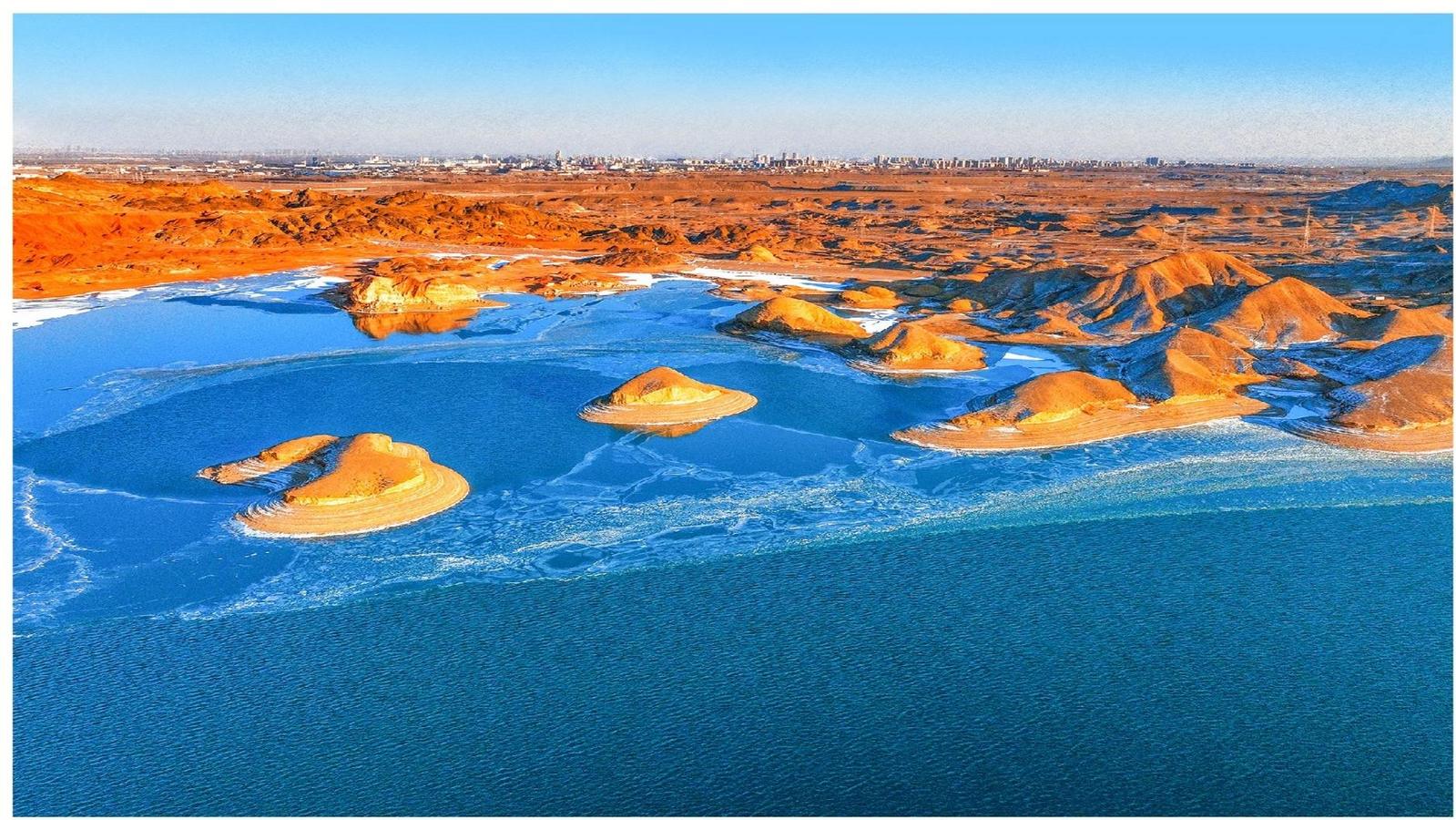 中國甘肅網2月8日訊 據嘉峪關日報報道(融媒體中心記者 李巍 攝)冬日的黑山湖,如鑲嵌在茫茫戈壁中的“天鏡”,與湛藍天色、夕陽下的丹霞地貌渾然一體,美得像一幅油畫。