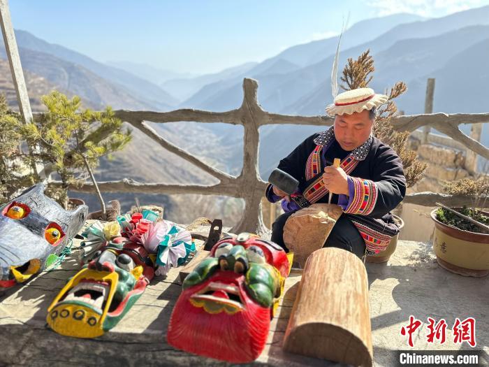 雕刻、打磨、上色……甘肅隴南市文縣鐵樓藏族鄉(xiāng)強曲村,白馬人薛剛一家四代人都精于木工。日前中新網(wǎng)記者走訪村子時,薛剛坐在自家院子里,伏案制作池哥晝所用面具。池哥晝是白馬人保留最完整、最具特色民族舞蹈,面具是重要道具之一。薛剛制作的面具不僅用于周邊村子的池哥晝中,而且被廣州、上海等地的客商購買收藏。他時常將自己的想象融入面具中,用心打磨使其更具“靈氣”。他說,白馬人中從事面具雕刻的手藝人不多,最近他物色了一個“00后”徒弟,對方興趣濃厚,希望將這門手藝保護傳承好。圖為薛剛在院子里雕刻面具。閆姣 攝