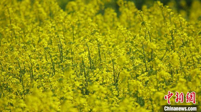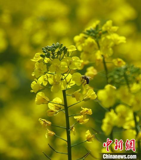近日,云南省騰沖市界頭鎮成片的油菜花盛開,吸引不少游客前來觀光。金黃的油菜花海與遠處白墻黛瓦的村落相映成趣,共同繪就一幅寫意的水墨畫。圖為油菜花吸引蜜蜂采蜜。趙輝 攝