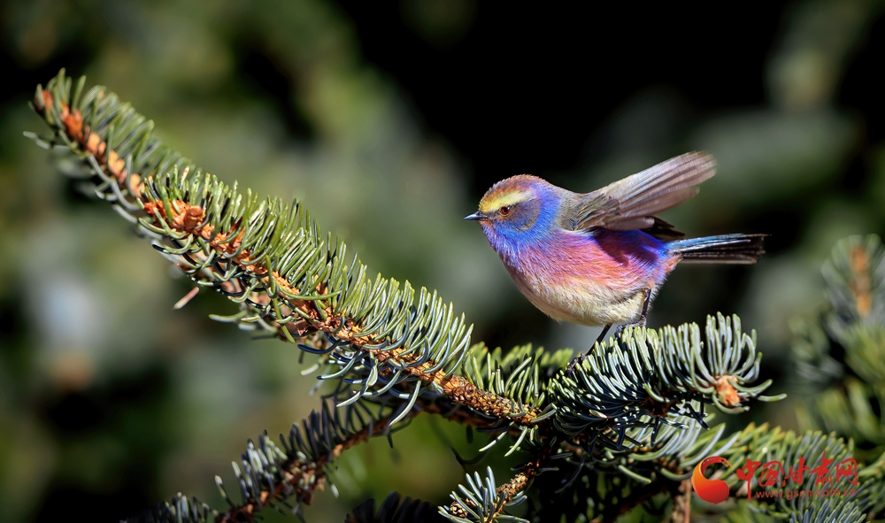2月25日,初春的甘肅祁連山國家級自然保護區管護中心馬蹄自然保護站林區,幾只花彩雀鶯正在悠閑覓食、鳴唱、飛舞。
