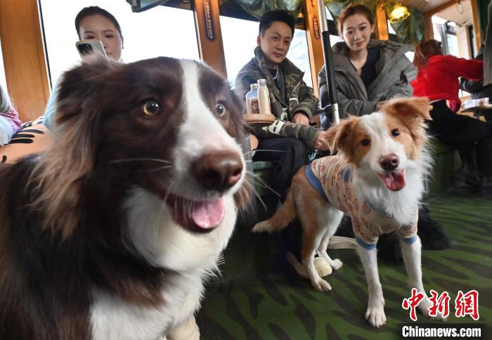 3月16日,吉林長春,寵物和主人在車廂內(nèi)看風景。近日,長春54路文旅東北虎專列專為寵物主人們推出攜帶寵物乘車的專屬服務,寵物主人可在特定時間帶領(lǐng)寵物乘車。車廂內(nèi),萌寵們或坐或臥,與主人親密互動,仿佛在進行一場別開生面的派對。中新社記者 張瑤 攝