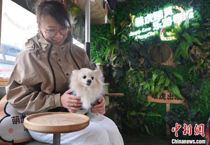 3月16日,吉林長春,寵物和主人在車廂拍照留念。中新社記者 張瑤 攝